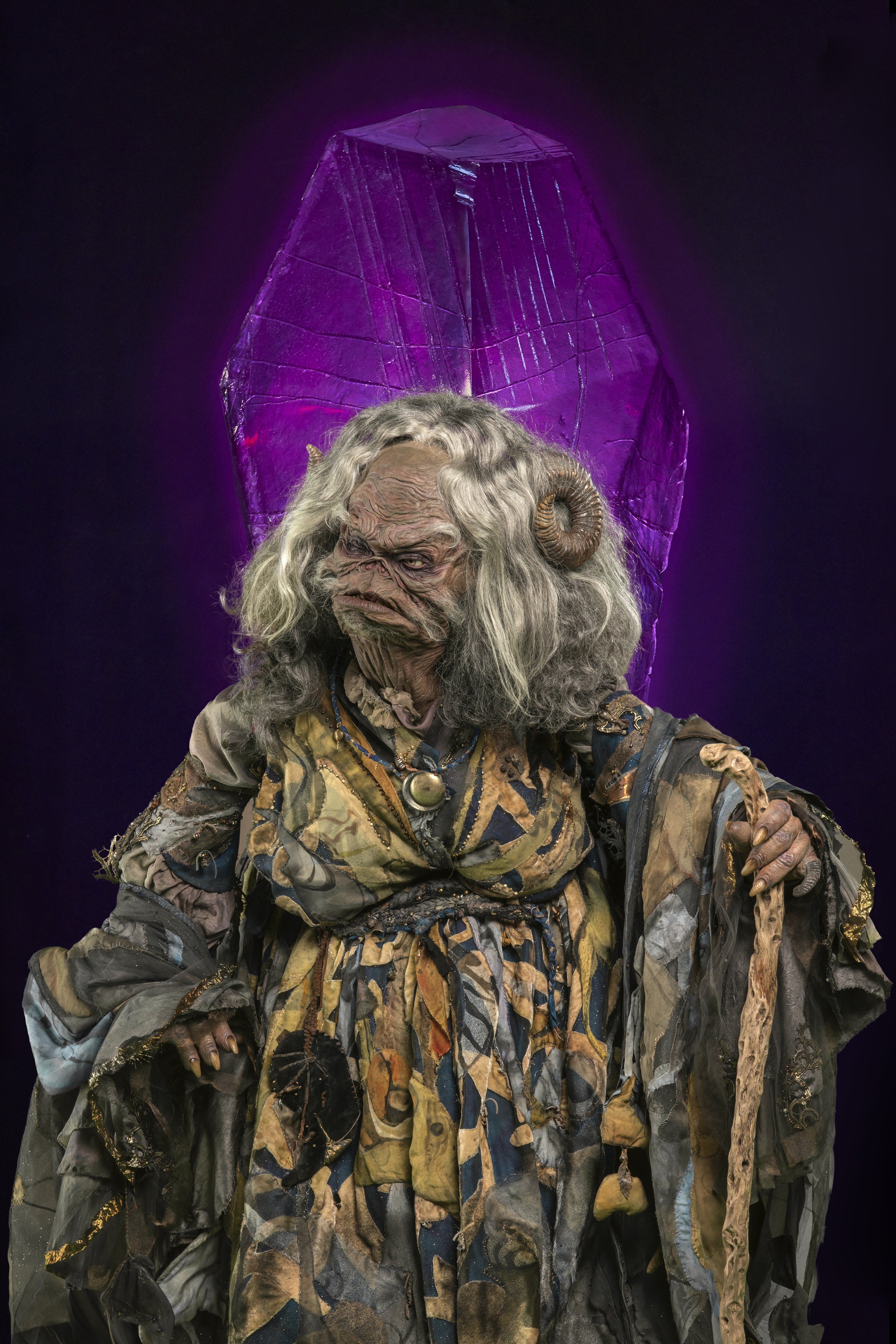 Aughra or Mother Aughra was the embodiment of Thra, acting as the world's eyes and voice. Created by the Crystal of Truth shortly after Thra's formation in the Age of Innocence to bring peace between plants and animals, Aughra guided the Gelfling in their early development, but later shifted her attention to the stars after being seduced by the otherworldly knowledge of the urSkeks during the Age of Harmony. During the Age of Division, she abandoned Thra in order to explore the Uni-Verse, returning later to guide the Gelfling resistance against the Skeksis.